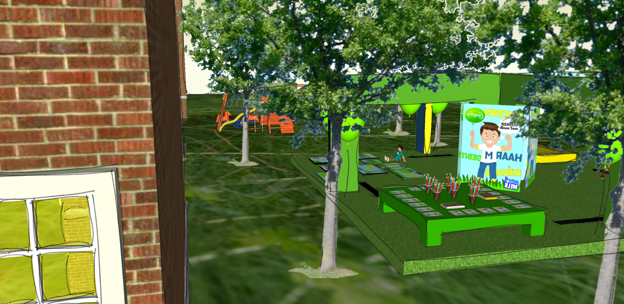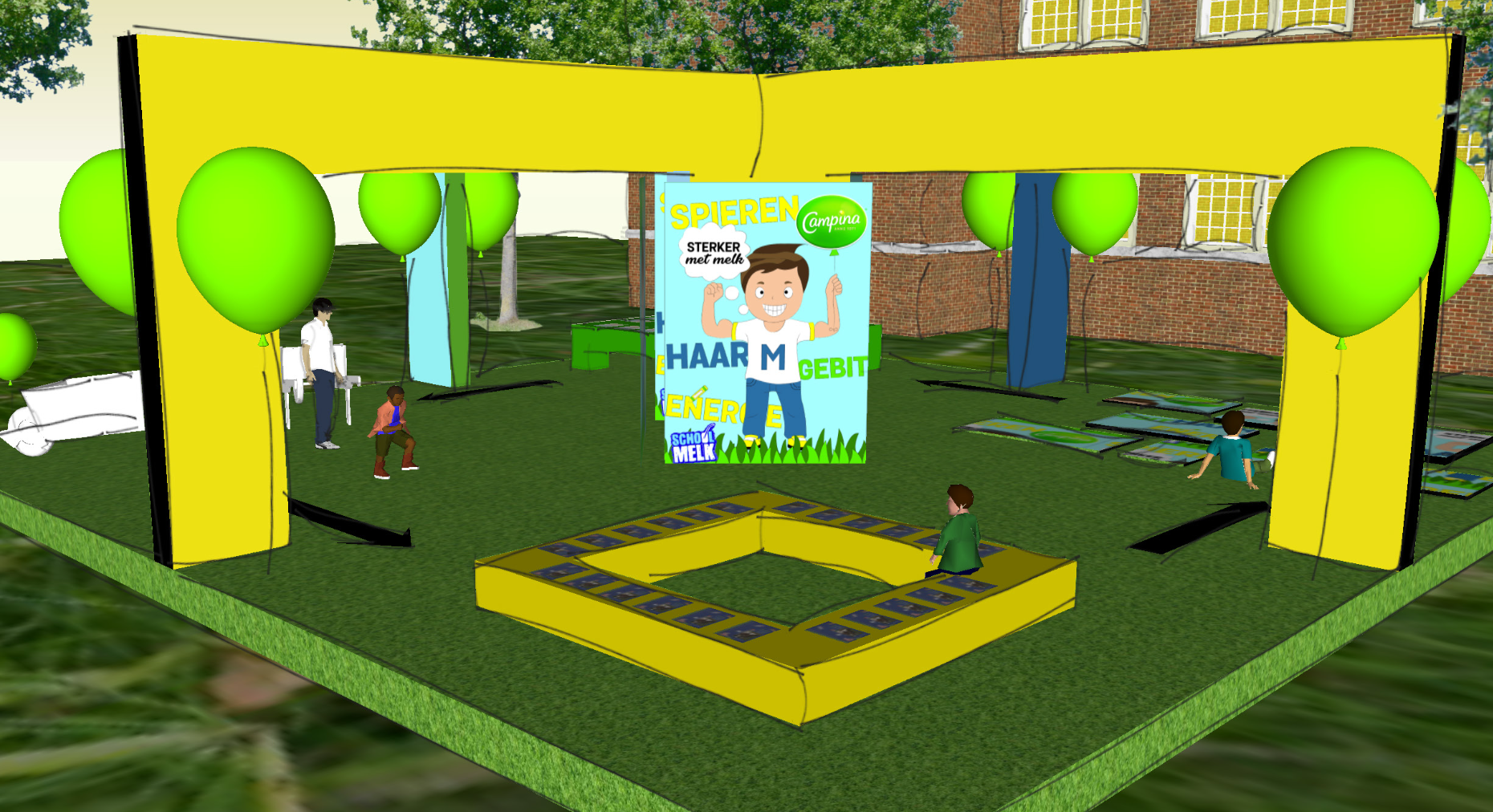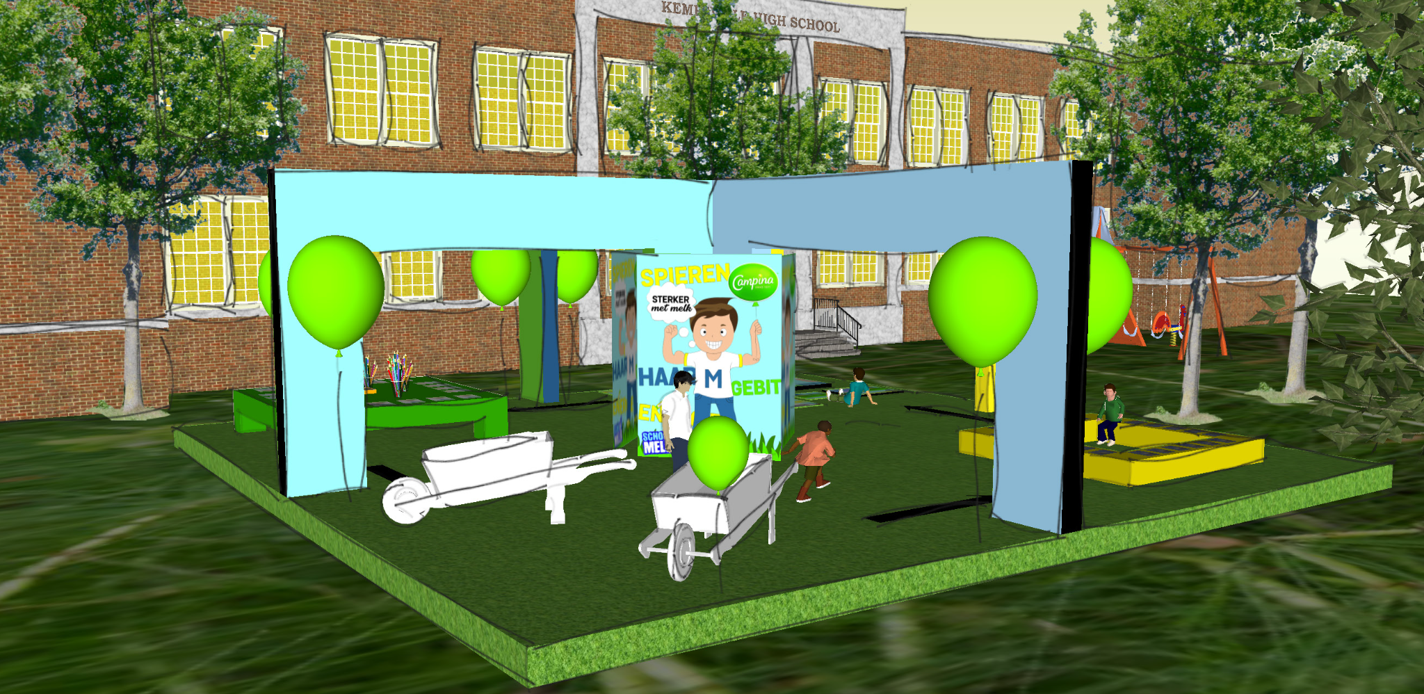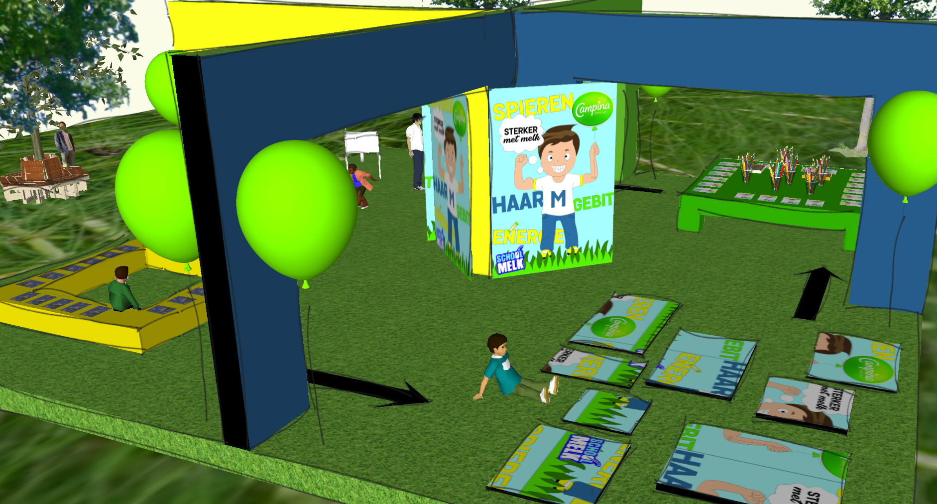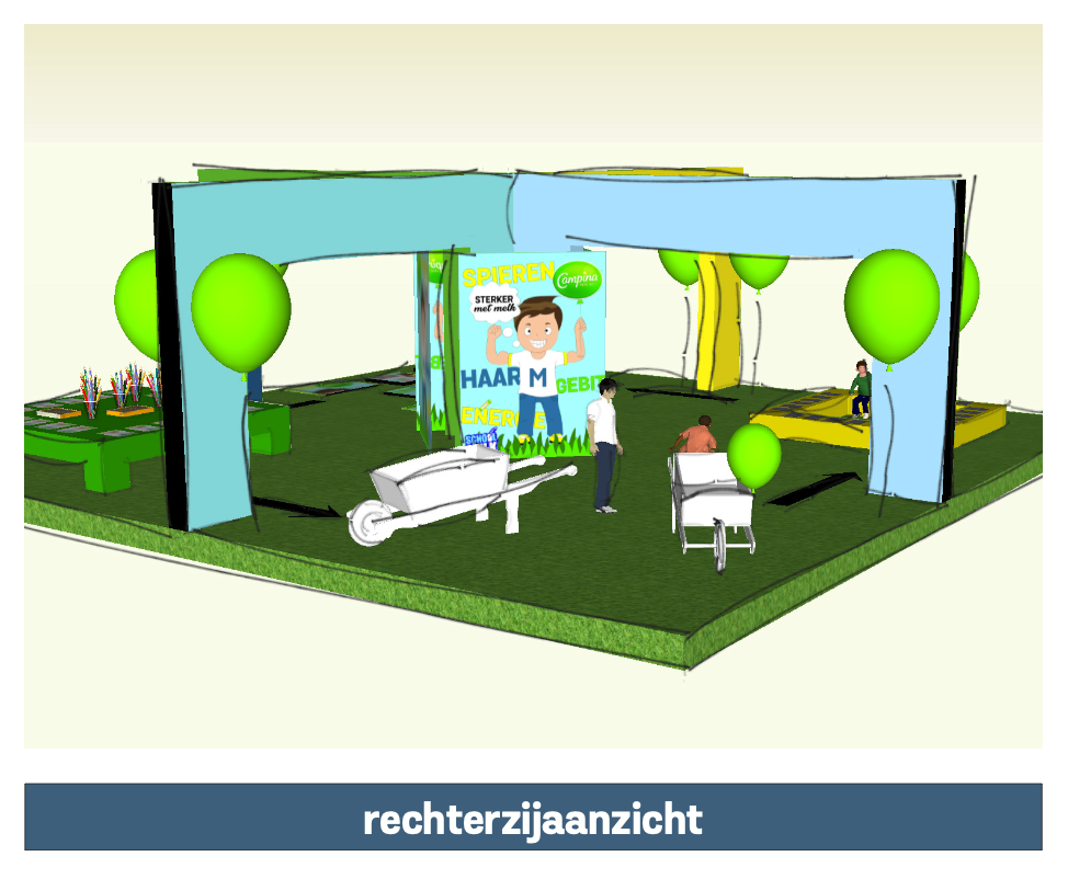The assignment was to develop an innovative concept and spatial design for an existing brand, in this case Campina School Milk. The goal was to make the product more visually and spatially appealing to preschoolers aged 4 to 5 and their parents, so that they become more aware of the importance of milk and are encouraged to drink it.